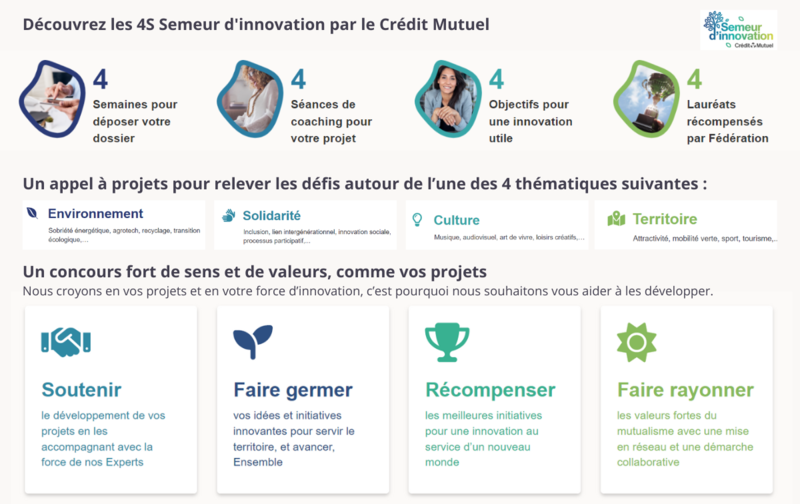 Le Crédit Mutuel lance l'édition 2023 de son appel à projets 4S Semeur d’innovation. Candidatez jusqu'au 2 avril 2023 !