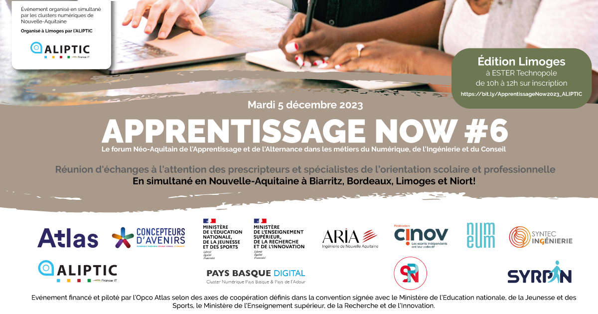 Inscription : https://bit.ly/ApprentissageNow2023_ALIPTIC