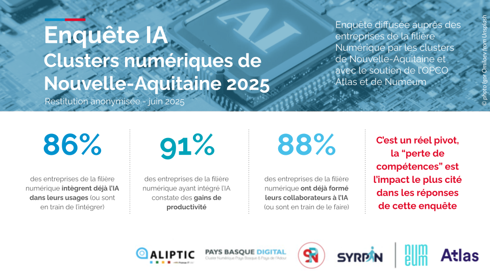 - Visualisez ou téléchargez l'enquête en .pdf (1Mo) : Restitution Enquête IA - Clusters Numériques Nouvelle-Aquitaine 2025