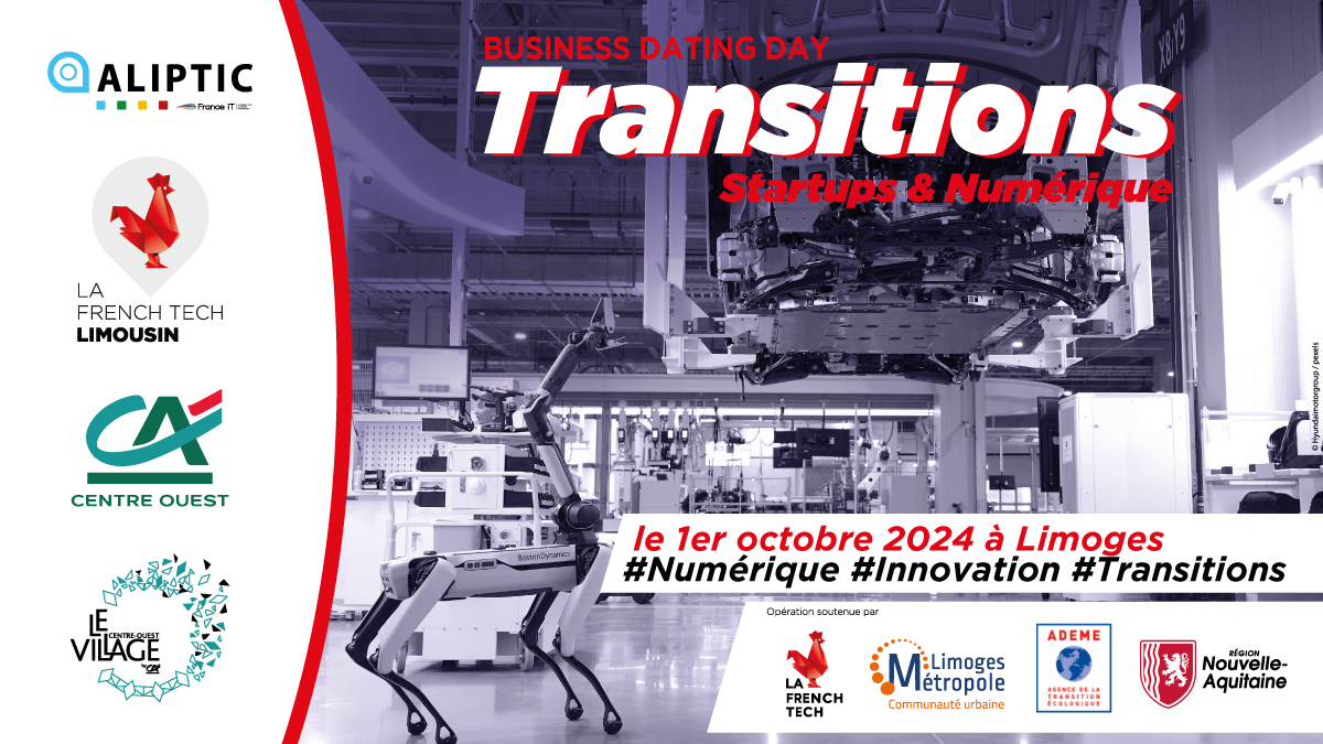 L'opération Business Dating Day 2024 est organisée par l'ALIPTIC et La French Tech Limousin avec le soutien du Crédit Agricole Centre Ouest & Village by CA.