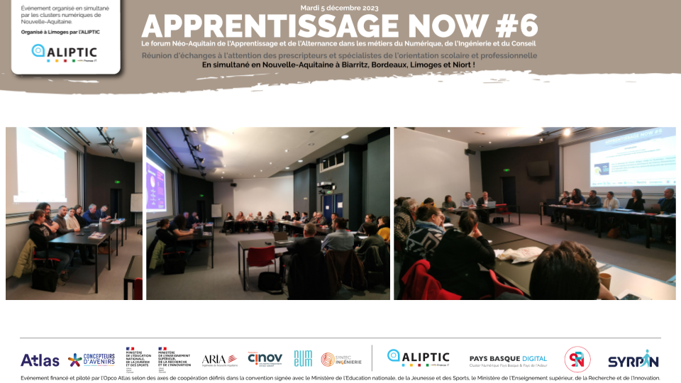 Hier, le 5 décembre 2023, s'est déroulée à Limoges (mais aussi à Biarritz, Bordeaux et Niort) la 6ème édition de Apprentissage Now à destination des prescripteurs et spécialistes de l’orientation scolaire et professionnelle, qui a regroupé 27 participants.