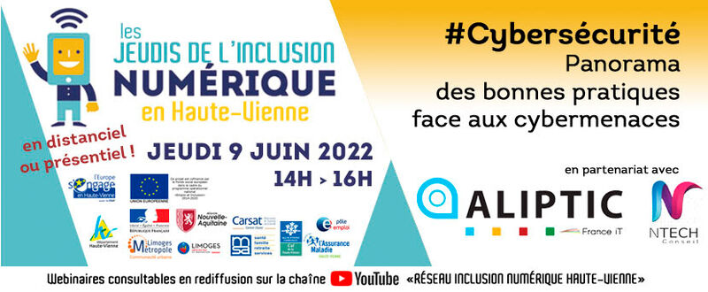 Retour sur le 13ème jeudi de l’inclusion numérique en Haute-Vienne “CYBERSECURITE : Panorama des bonnes pratiques face aux cybermenaces ” qui s’est déroulé jeudi 9 Juin dernier au Hub Numérique et Innovation à ESTER (en ligne et en présentiel)