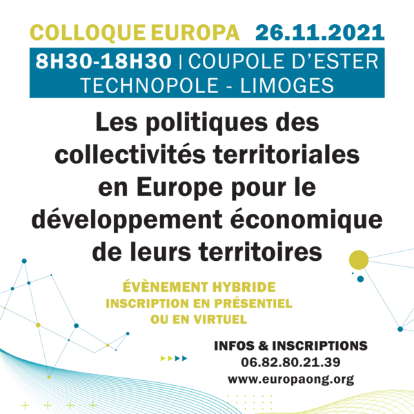 Europa ONG organise le #ColloqueEuropa le 26.11.2021 à ESTER Technopole (ou en ligne) pour suivre les rapports des experts et intervenants de France et d'Europe.