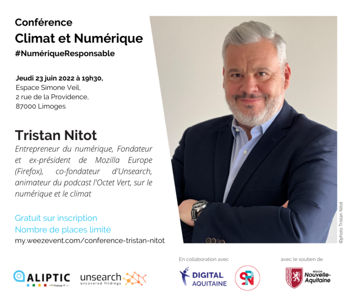 L’ALIPTIC organise conjointement avec Digital Aquitaine et le SPN une conférence sur la thématique Numérique Responsable le 23 juin prochain à Limoges.