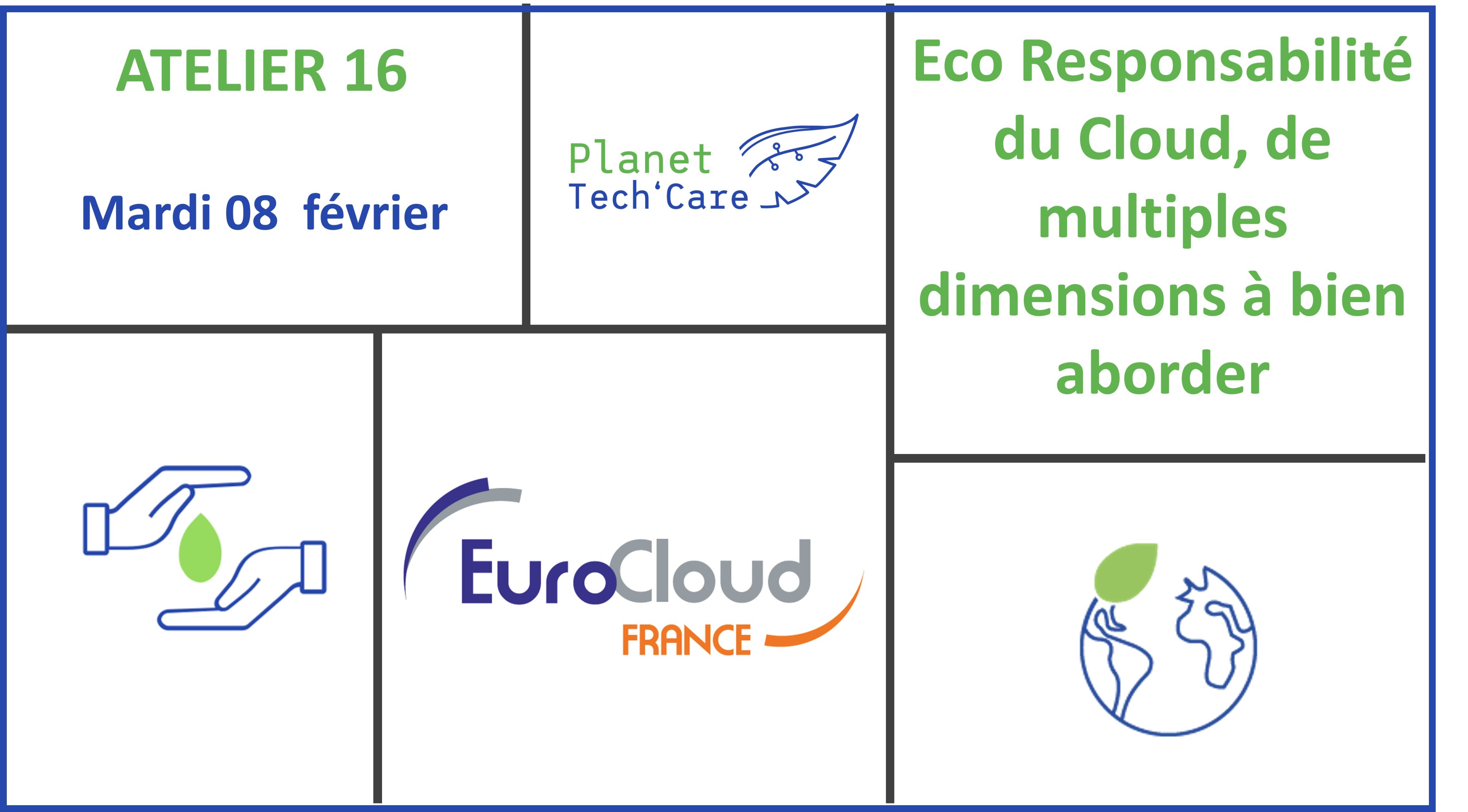 Le thème de cet ATELIER 16 – Planet Tech’Care portera sur l’éco responsabilité du Cloud. Ainsi, de multiples dimensions seront abordées ! L’atelier sera animé par Eurocloud France