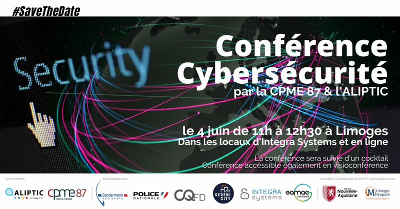 L'ALIPTIC et la CPME87 organisent une conférence sur la Cybersécurité le 4 juin de 11h à 12h30 à Limoges !
